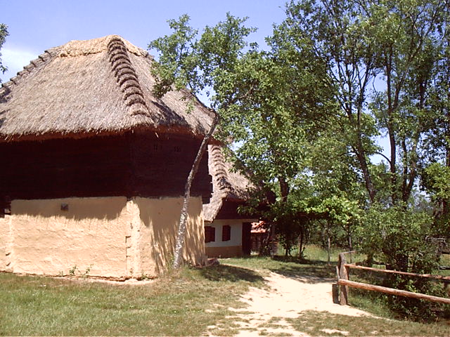 Építkezési anyag azelőtt a vályog volt, ritkábban és csak némely vidéken a vert fal. Itt-ott fecskerakást is találhatni. Ma már a legtöbb helyen téglából építenek. Azelőtt a homlokfalat deszkából, vagy sárral betapasztott sövényből készítették, mint az még a régi házakon látszik. Ma már, az újabb házaknál, kőből van építve.